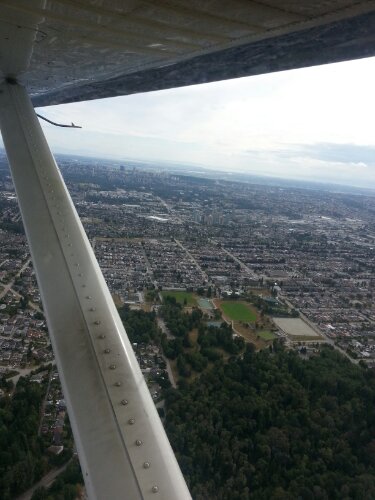 Flight over Vancouver with waterplane